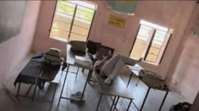 नागौर स्कूल में लापरवाही की हद, मास्टर साहब आराम फरमाते पकड़े गए