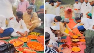 गंगा के बाद अब मंदिर के पास उड़ाई इफ्तार की दावत, वायरल वीडियो से मचा हड़कंप