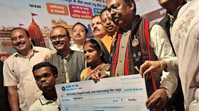 रायपुर : बिलासपुर में जिला स्तरीय राज्योत्सव कार्यक्रम में केंद्रीय आवासन एवं शहरी विकास राज्य मंत्री तोखन साहू ने श्रम विभाग द्वारा संचालित विभिन्न कल्याणकारी योजनाओं के हितग्राहियों को चेक...