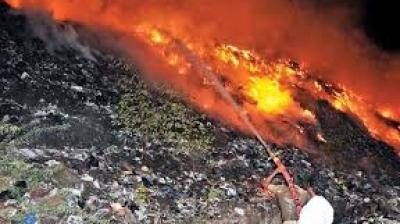 कचरा डंपिंग यार्ड में भीषण आग, 30 फीट ऊंची लपटों ने मचाया हड़कंप