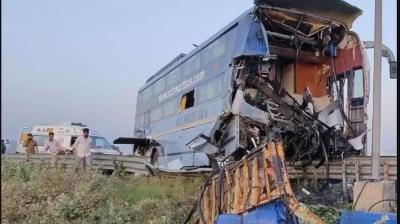 दिल्ली-मुंबई एक्सप्रेसवे पर भीषण हादसा, बस-ट्रक टक्कर में 3 की मौत