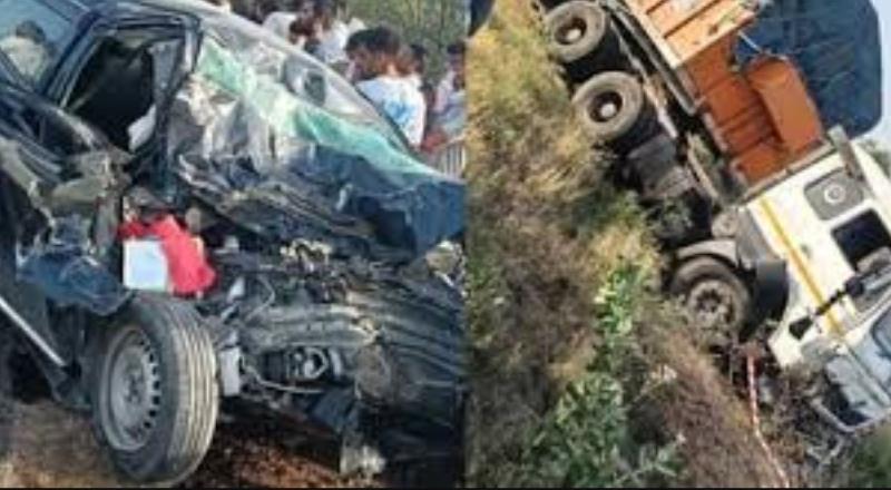 बड़ा हादसा: बच्चों को सुरक्षित बचाने के फेर में चालक ने कार से नियंत्रण खो दिया, जिसके कारण कार सीधे सामने से आ रहे भारी ट्रेलर में जा घुसी।
