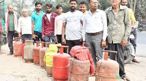 गैस भरवाने के लिए लगी लंबी लाइनें