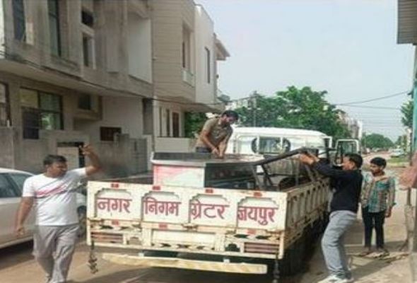 जयपुर । नगर निगम जयपुर आयुक्त डॉ. गौरव सैनी के निर्देषानुसार एवं पूर्व से प्राप्त शिकायतों पर उपायुक्त सतर्कता के नेतृत्व में सतर्कता शाखा की द्वारा नगर निगम जयपुर क्षेत्राधिकार में रामबाग सर्किल से एयरपोर्ट तक, बी-2 बाईपास से एसएफएस चैराहा, मानसरोवर न्यू सांगानेर रोड़ एवं 200 फीट बाईपास अजमेर रोड़ सेे अस्थाई अतिक्रमण करने वालों के विरुद्ध 3 हजार रुपये का कैरिंग चार्ज वसूल कर 4 केन्टर सामान जब्त किया गया।