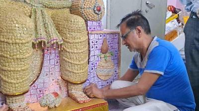 सोयाबीन से बनी 51 हजार दानों की गणपति प्रतिमा, पर्यावरण संरक्षण का दिया संदेश