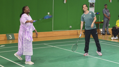 राष्ट्रपति द्रौपदी मुर्मु ने साइना नेहवाल के साथ खेला बैडमिंटन