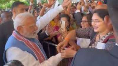 सिंगापुर में पीएम मोदी का जोरदार स्वागत......महिला ने बांधी राखी