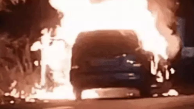 चलती कार के इंजन में अचानक लगी भीषण आग