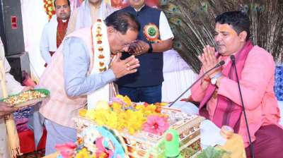 मुख्यमंत्री विष्णुदेव साय ग्राम लोधमा में आयोजित श्रीमद भागवत ज्ञान यज्ञ सप्ताह में शामिल हुए