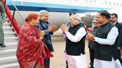 रायपुर पहुंचे उपराष्ट्रपति; cm विष्णुदेव साय ने किया स्वागत, कृषि विश्वविद्यालय और विधानसभा के कार्यक्रम में होंगे शामिल