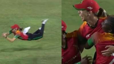 एरिन बर्न्स हवा में छलांग लगाते हुए लपका शानदार कैच