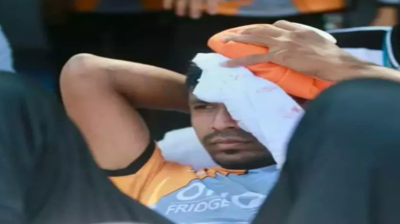 बांग्लादेश के तेज गेंदबाज मुस्तफिजुर रहमान के सिर पर बॉल लगी