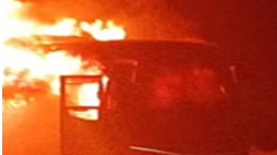 वीडियोकोच बस में शॉर्ट सर्किट से लगी भीषण आग