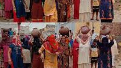 जयपुर । राजस्थान के कठूमर उपखंड क्षेत्र के ग्राम सौंखरी में पानी नहीं मिलने के कारण गांव के रास्ते पर महिलाओं ने मटके फोड़ कर, पत्थर, कांटेदार लकडिय़ां डालकर जाम...