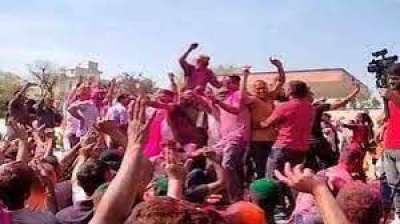 मुख्यमंत्री के साथ अधिकारियों कर्मचारी ने फूलो की होली मनाई