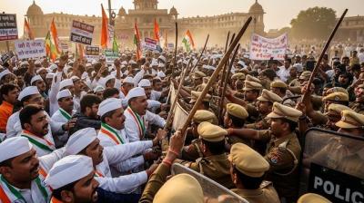 विधानसभा घेराव में चली वाटर कैनन, कई महिला कार्यकर्ता बेहोश